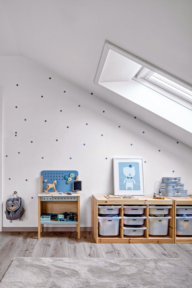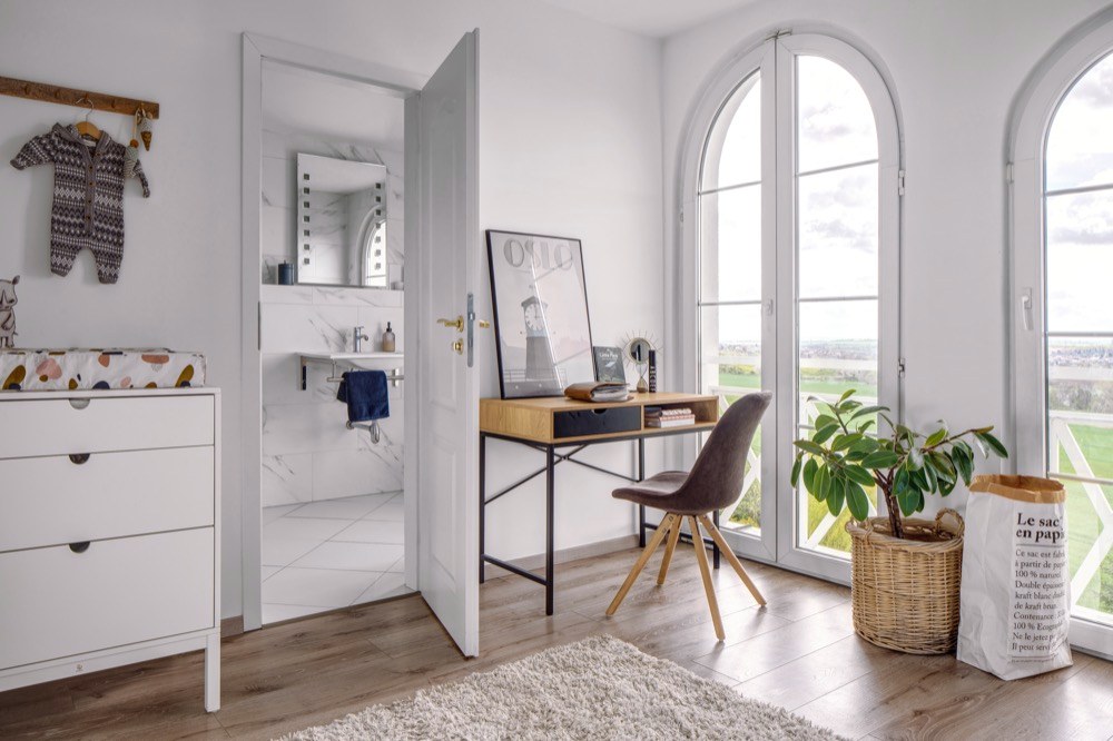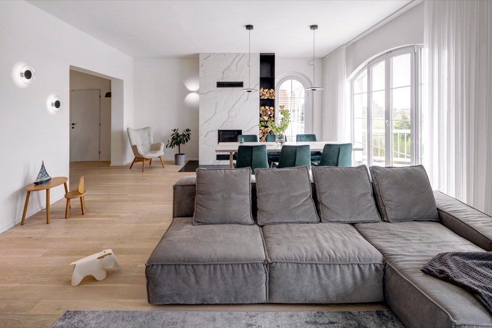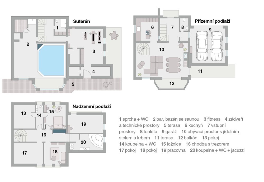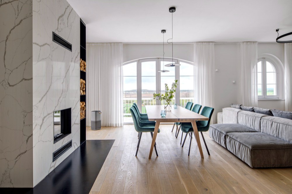 Dům na okraji Prahy na základě fotografií výběrem neprošel, ale když dostal šanci naživo, učaroval manželům umístěním, výhledem i skrytým potenciálem V současné době má 12 místností, z toho je pět koupelen. Dispozice se dá ale snadno změnit a v suterénu by třeba mohla vzniknout oddělená bytová jednotka pro děti, až budou cítit potřebu většího soukromí.