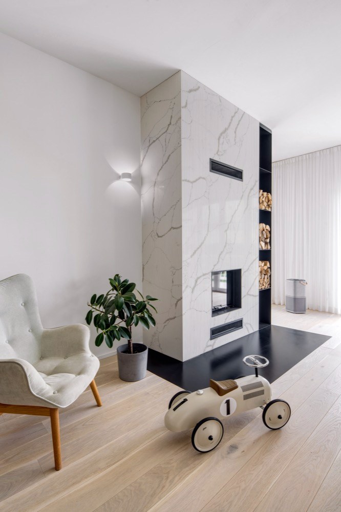 S rekonstrukcí vilky o obytné ploše 290 m2 manželům pomáhají architekti Radka Valová a David Skořepa ze studia OOOOX. Doposud je dle návrhu studia OOOOX zrekonstruováno přízemí se zádveřím, velkým obývacím pokojem a kuchyní. Tereza dlouho váhala, zda umělý černý kámen a černá stěna (tabulová barva) budou do kuchyně to pravé, ale s výsledkem je velmi spokojená. Obývací pokoj je plný světla, má nádherný výhled, vstup na balkon. Právě dostatek světla, jednoduché tvary, přírodní materiály a pastelové barvy jsou tak typické pro skandinávské interiéry. V tom se Tereziny představy s architekty protnuly. Výrazným prvkem je krb obložený tvrzeným kamenem a se speciálními úložnými policemi na dřevo. Vůbec všechno je ve zrekonstruované části interiéru vymyšlené tak, aby se vždy dalo jednoduše uklidit – a to do zabudovaných úložných prostorů. Vzdušnost interiéru nenarušují žádné skříně nebo komody. Tereziny fanynky ji často na jejím instagramu obdivují, že snad doma nemá nikdy nepořádek. Trik je prý právě v těch dobře promyšlených úložných prostorech. Rekonstrukce bude pokračovat prvním patrem, kde se v současnosti nacházejí ložnice, dětský pokoj, herna a pokoj pro hosty.