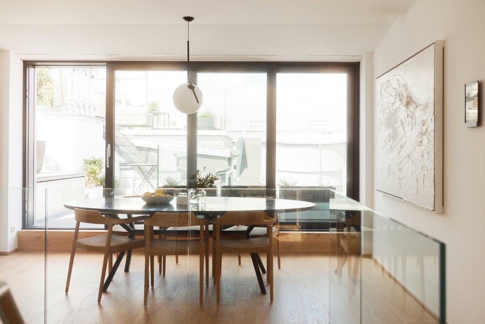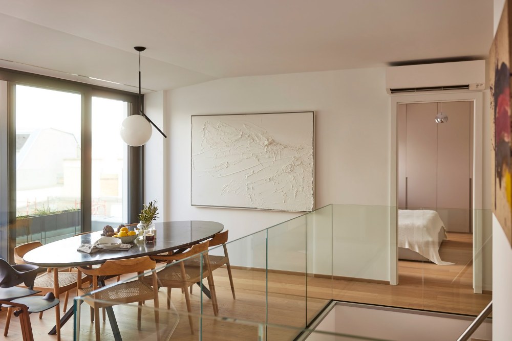 Mezonetová terasa je něco, co rodina skutečně oceňuje a lze ji použít s přáteli na brunch a grilování. Na spodní úrovni je jídelna a na horním podlaží je XL obývací pokoj s panoramatickým výhledem na město.