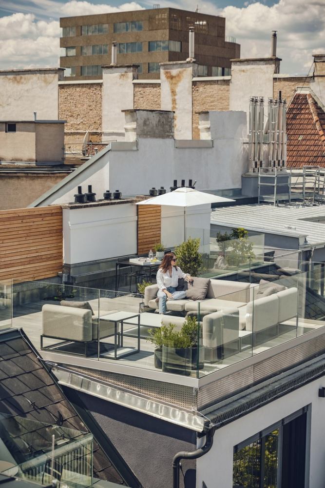 Nově upravený, útulný podkrovní byt byl právě přistavěn ke staré budově a z prostorné terasy se zdá, že nebe nad Vídní máte na dosah ruky.