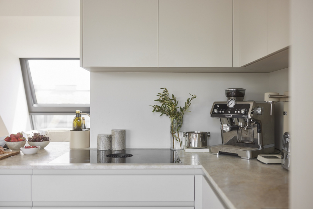„Miluji naši velkou střešní terasu a můj oblíbený prostor je malý kousek za kuchyní. Malý stůl vedle kuchyně mi trochu připomíná Mary Poppins.“ Dodává Katharina z @ketchem.