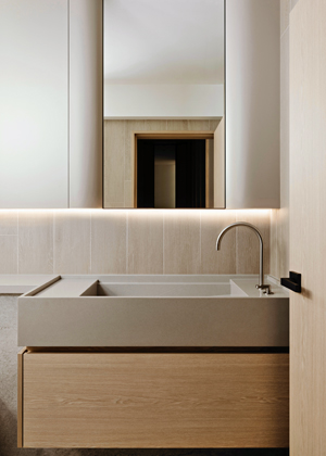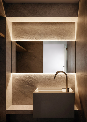 V paletě použitých barev převládají krémové a neutrální tóny, které vytvářejí hřejivou, poklidnou a příjemnou atmosféru a interiér vizuálně propojují v celém prostoru. Také skutečnost, že architekti sáhli pouze po několika ryze přírodních materiálech a vytěžili je napříč celým bytem, podporuje jeho minimalistický charakter. Kdo zná příběh a společnou práci obou architektů, pochopí, že svou koncepcí Rasidence přesahuje pouhý životní prostor a zároveň dokumentuje vývoj celého studia.