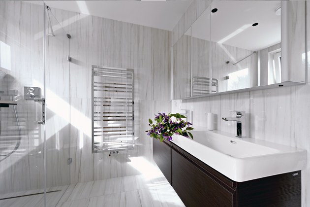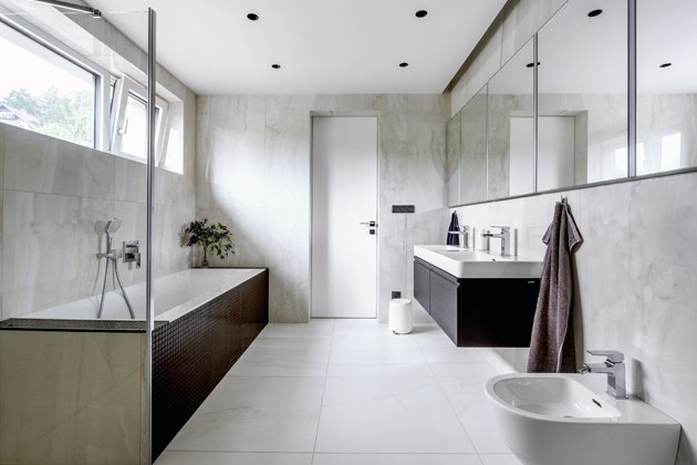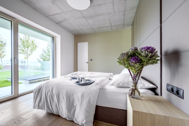 Také ložnici, na niž by navazovala prostorná šatna a koupelna tak, aby se osoba, která vstává dřív, nemusela už do ložnice vůbec vracet a nerušila spícího partnera,“ vysvětluje paní domu.