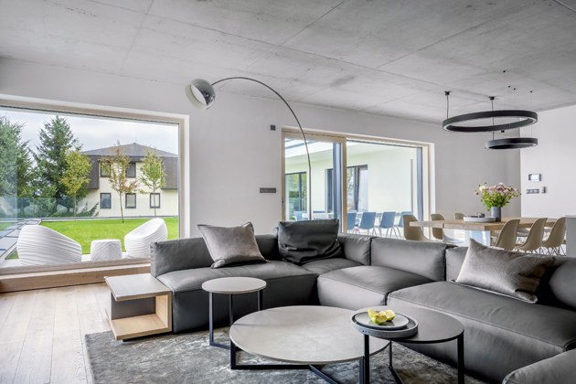 Tímto domem ve tvaru písmene L si mladí manželé splnili svůj sen. Než však mohli opustit nájemní bydlení a začít si i s dvouletým synem užívat komfortní zázemí moderního domu a jeho atraktivní nadčasový interiér, bylo třeba doladit vše do posledního detailu. O to se postaralo studio Concept Store Karlín pod vedením Jaroslava Harmáčka.