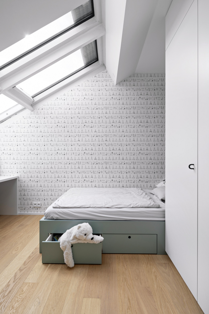 V těsné blízkosti náměstí Jiřího z Poděbrad na pražských Vinohradech vytvořili architekti ze studia Flat White prostor pro život, který beze zbytku naplňuje potřeby jedné mladé rodiny. A přestože interiér rekonstruovaného půdního bytu zároveň duchaplně reflektuje současné trendy v oblasti designu i architektury, osobitost mu rozhodně nechybí.