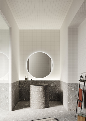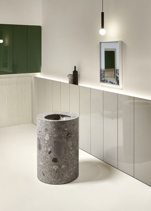 Kolekce mimo jiné zahrnuje podlahy a stěny také vyrobené z Ceppo di Grè. Důležitá novinka, která znamená vstup antoniolupi do světa nátěrů a dále rozšiřuje samotný záběr značky.