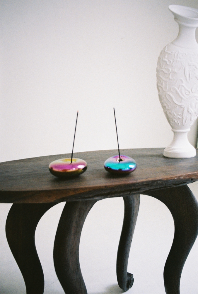 Stojánky na vonné tyčinky Incense Altar (Pigmentarium) jsou vyrobeny z pokoveného porcelánu ručním litím do forem.