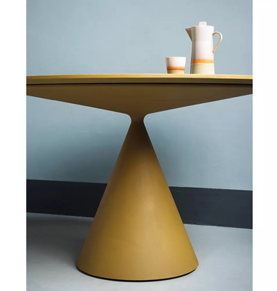 Stůl Desalto Clay není jen estetickým objektem, ale také vysoce funkčním kusem nábytku. Stabilní kuželovitá základna zajišťuje pevnost a stabilitu, zatímco vzdušná a lehká deska poskytuje dostatečný prostor pro každodenní použití. Je to perfektní stůl pro rodinné večeře nebo pracovní schůzky.