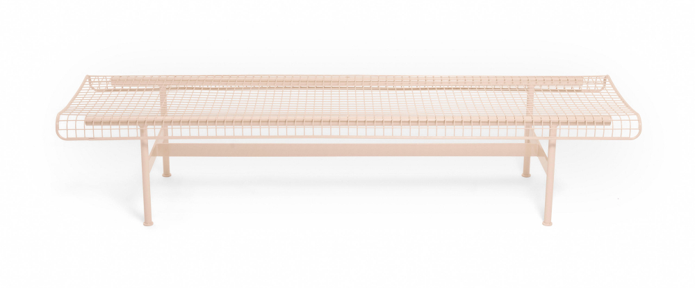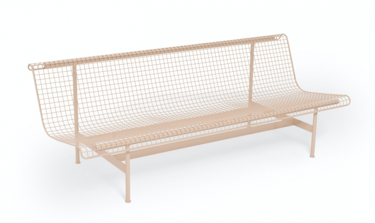 Sedadlo tvořené pružnou ocelovou sítí má ergonomický tvar a v kombinaci s polštáři nabízí překvapivé pohodlí. Kolekce zahrnující křesla, lavice, židle a stolky je vhodná pro interiérové i exteriérové použití.