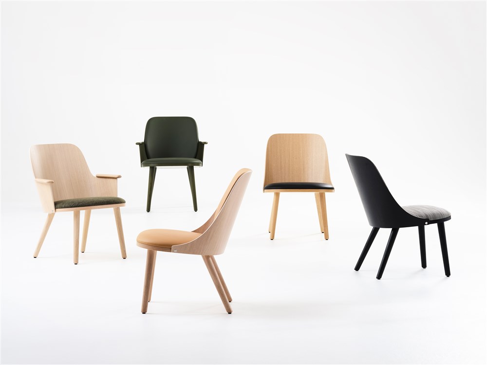 Oblé linie, citlivě zvolené barevné odstíny a elegantní zakřivení dýhy posouvají osvědčenou ideu do současnosti a svou jemností téměř popírají původní zdroj inspirace.