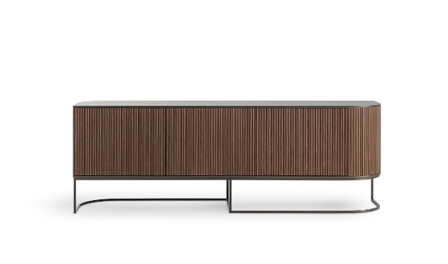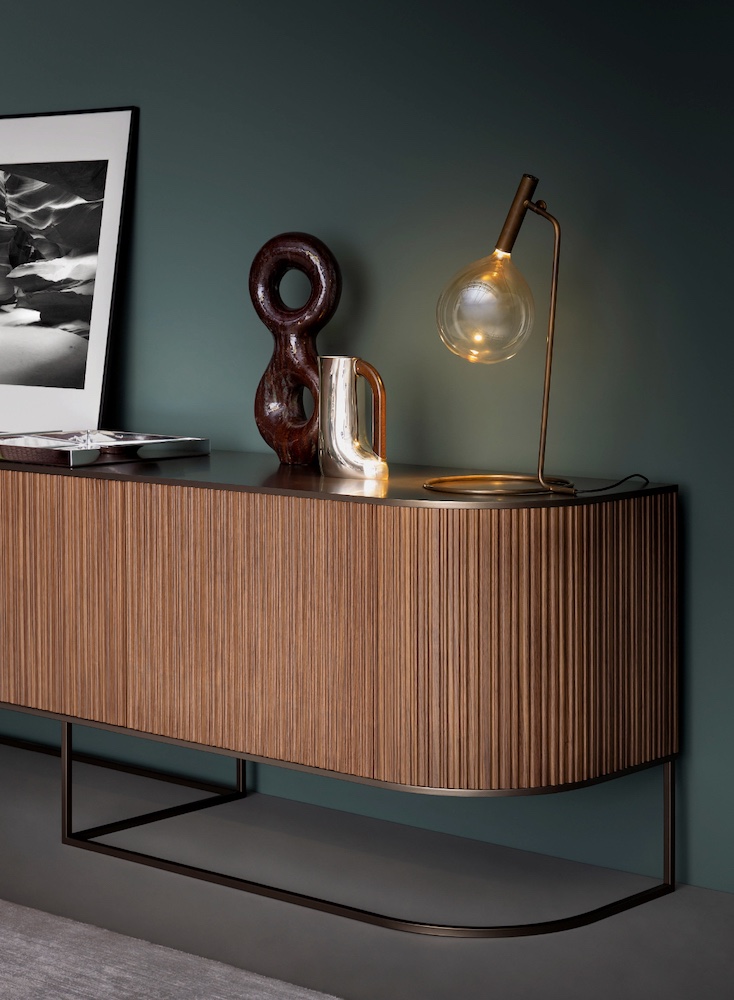 Elegantní oblé linie na kovové základně na výbornou poslouží v ložnicích, pracovnách i obývacích pokojích, a to jako po praktické, tak estetické stránce. Podmanivá práce světla a stínu tvořená žebrováním dřevěné výplně dveří působí elegantně, až vznešeně a hravá je jako samotný vítr v poušti.