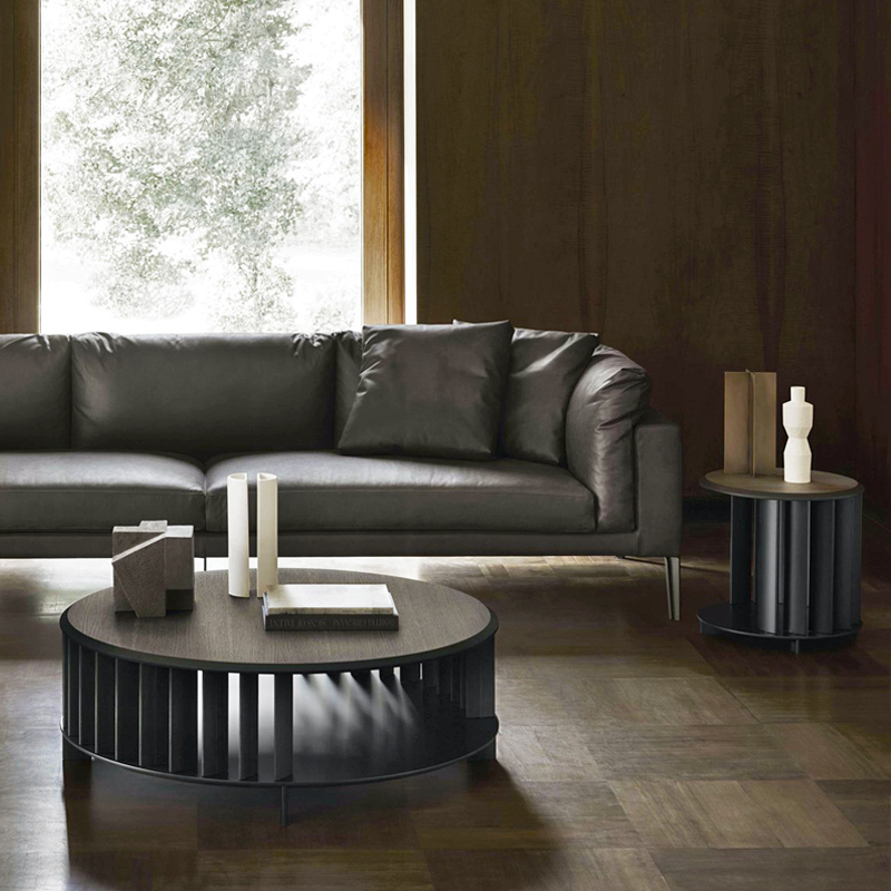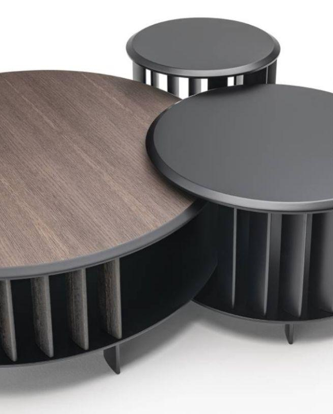 Konferenční stolky Islands (Living Divani) jsou po obvodu vybaveny otočnými lamelami, které částečně ukrývají úložný prostor.