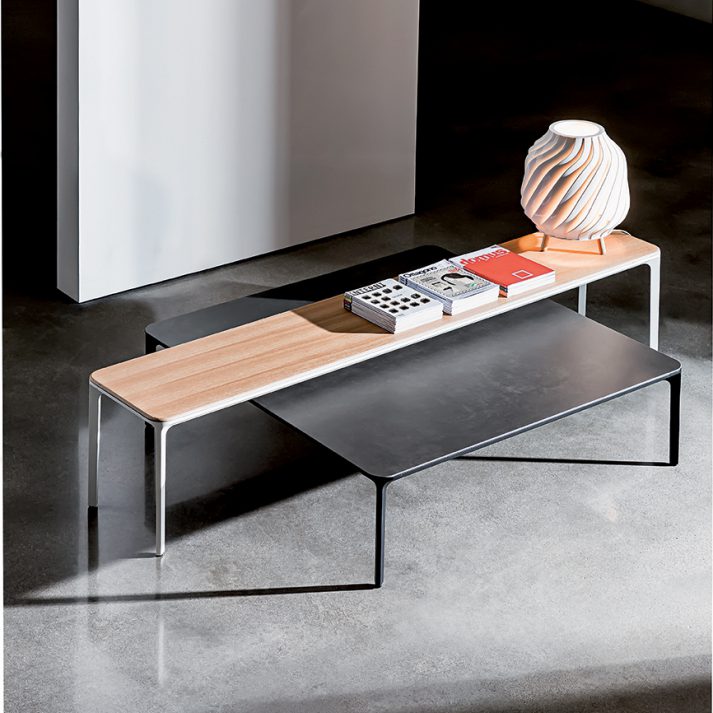 Konferenční stůl se vyrábí ve třech výškách, tudíž lze v interiéru doplnit o jeden samostatný stolek nebo o složitější kombinaci dvou nebo tří vzájemně překrytých stolků, které krásně vyniknou.