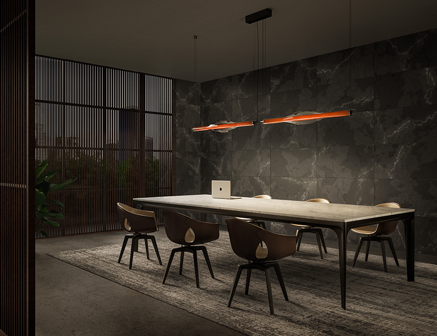 Amorfní linie a ušlechtilé materiály charakterizují závěsné svítidlo Dune (LZF), které okouzlí svým skulpturálním vzhledem.