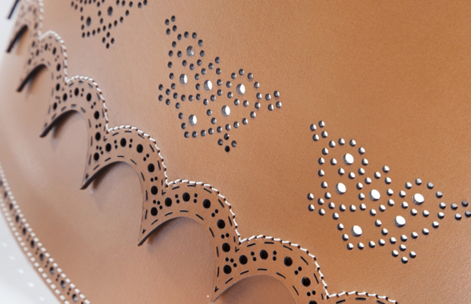 Stínítka na lampu nemusí být nudná. O tom nás přesvědčil britský designér Daniel Schofield, když při výrobě lampy Brogue Light použil kůži. S využitím vektorového softwaru do ní nechal laserem vyříznout vzor a stínítko ozdobil prošíváním.