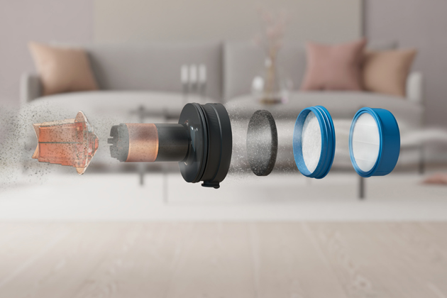 Důležitou součástí úklidu je i čistota vzduchu ve vašem domově. S výkonnou 5stupňovou filtrací se můžete spolehnout, že dokáže zachytit až 99,9 % prachových částic, které by se jinak uvolnily z vysavače zpět do okolního vzduchu. Kompletní sada filtrů zajistí, že váš vysavač bude pracovat s tím nejlepším možným výkonem a zajistí vám tak spokojenější a zdravější domov.