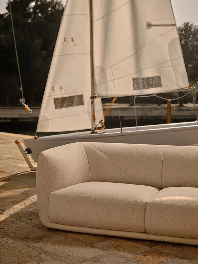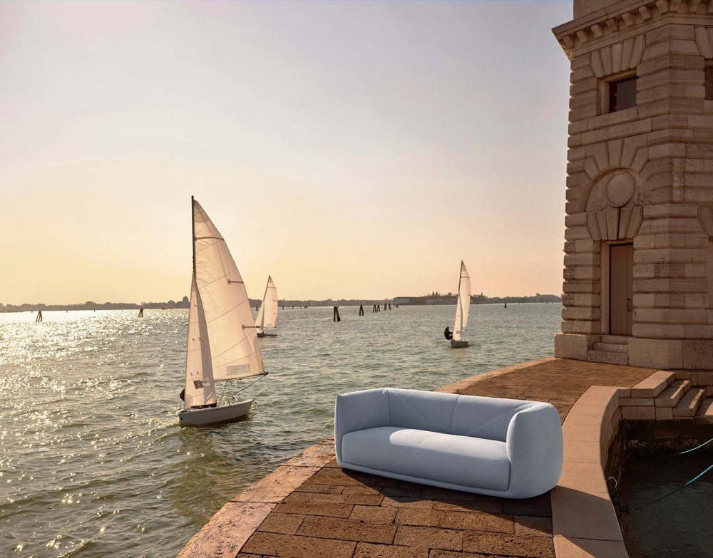 Plachty připevněné ke stěžni člunu se rozvinou pod tlakem vánku a pak se majestátně vzdouvají a vytvářejí sofistikované linie za doprovodu šumění větru... Tak zní a vypadá předloha pohovky Vela (Saba), symbolizující dialog mezi člověkem a přírodou. Silueta i jemné detaily sedacího nábytku připomínají eleganci přiznané předlohy, výrazný prvek v podobě prošívání odkazuje na rozvinutou plachtu přímočařeji. Cena na dotaz, WWW.STOCKIST.CZ