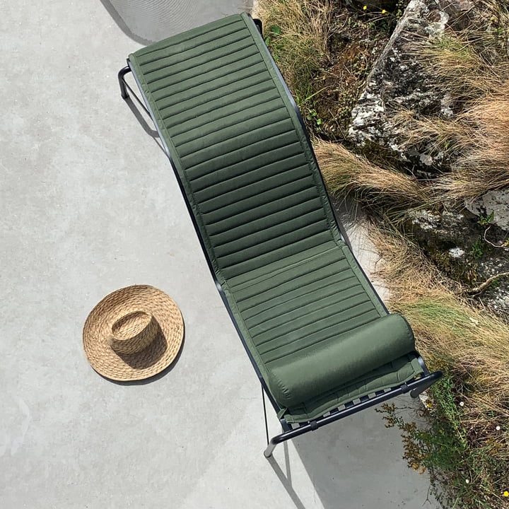 Zakřivený rám lehátka, které čerstvě obohatilo sérii venkovního nábytku Palissade (HAY), sebejistě předurčuje formu té nejlepší relaxace pod sluncem.
