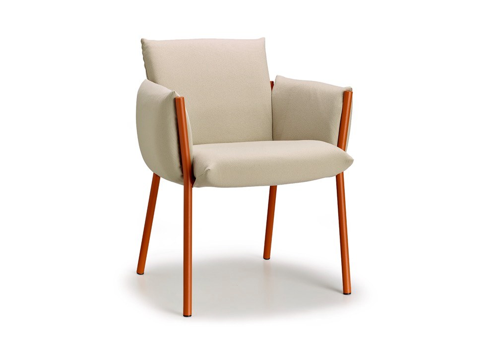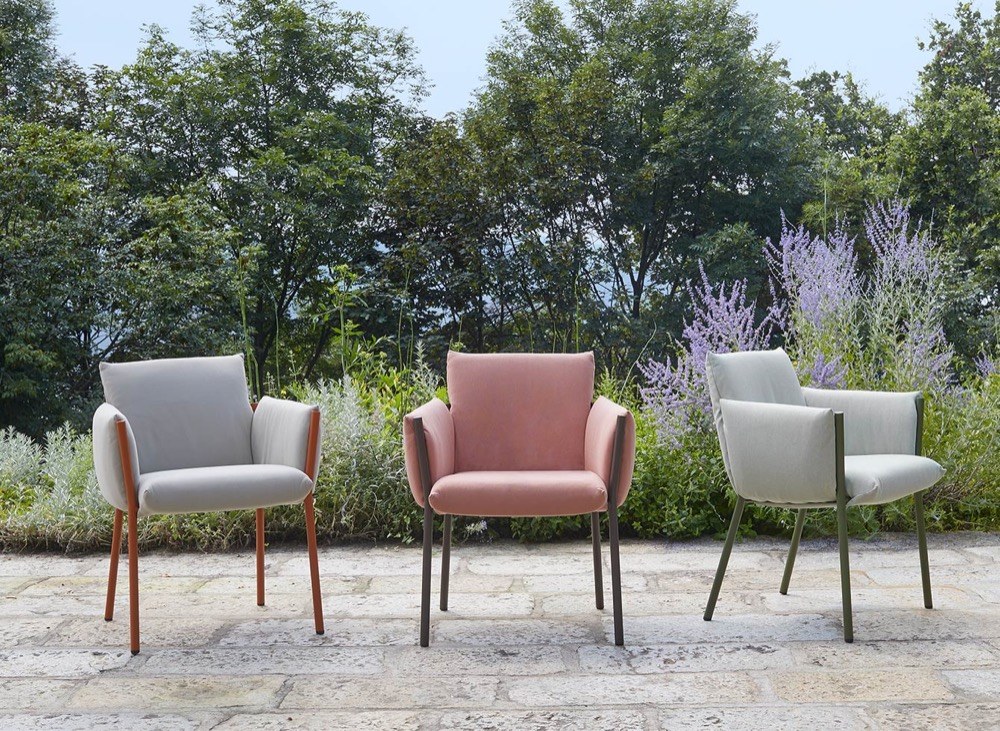 Pevnost a odolnost trubkového rámu z oceli harmonicky kontrastuje s měkkostí a pohodlím velkorysého polstrování outdoorové židle Brezza (S.cab). Dostupná je v široké škále barevnosti konstrukce i čalounění, které lze zvolit také v ekologické variantě v podobě tkanin z recyklovaných materiálů. Design Alessandro Stabile, rozměry 62 × 55 × 79 cm, cena na dotaz, WWW.LINO.CZ