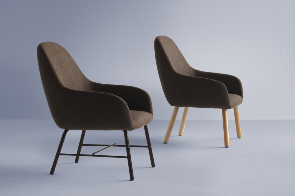 Podařilo se mu navrhnout produkt, který svojí elegancí doplní každé prostředí. Na výběr je dřevená a ocelová konstrukce. Sedák je v látce.