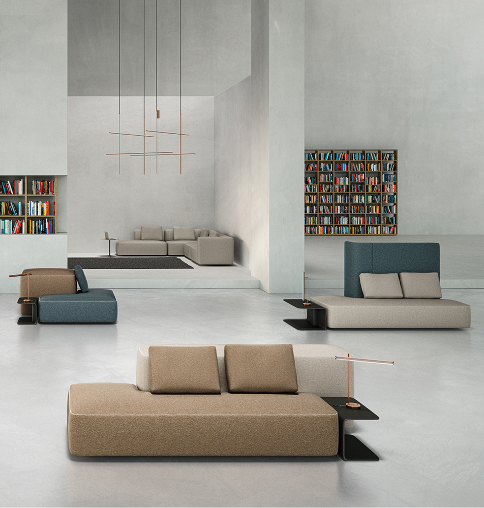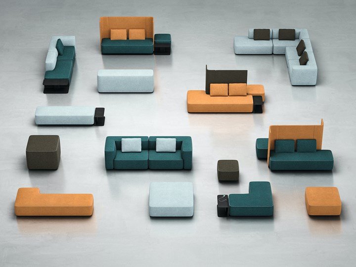 Kolekci Pads (Brunner) tvoří maximálně variabilní modulární sedací nábytek, vhodný do soukromých i veřejných interiérů.
