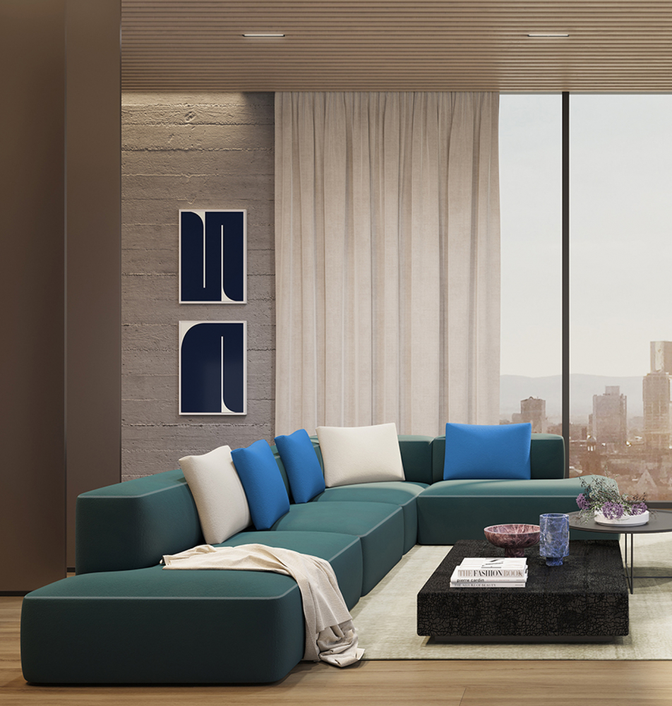 Zahrnuje devět jednoduchých prvků včetně odkládacího stolku s USB, dělicích panelů a polštářů v mnoha rozměrech, které lze vzájemně zas a znovu kombinovat.