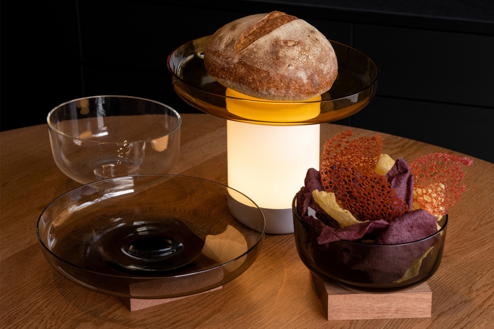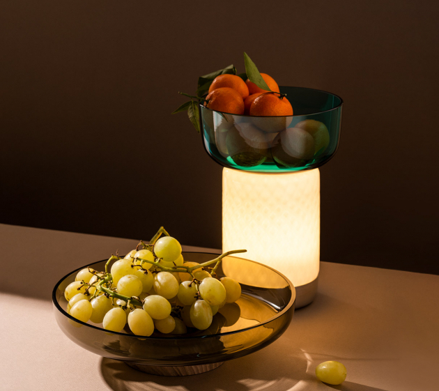 Přenosná lampa poskytující jemně rozptýlené osvětlení totiž slouží také jako podstavec pro misky několika rozměrů a barev.