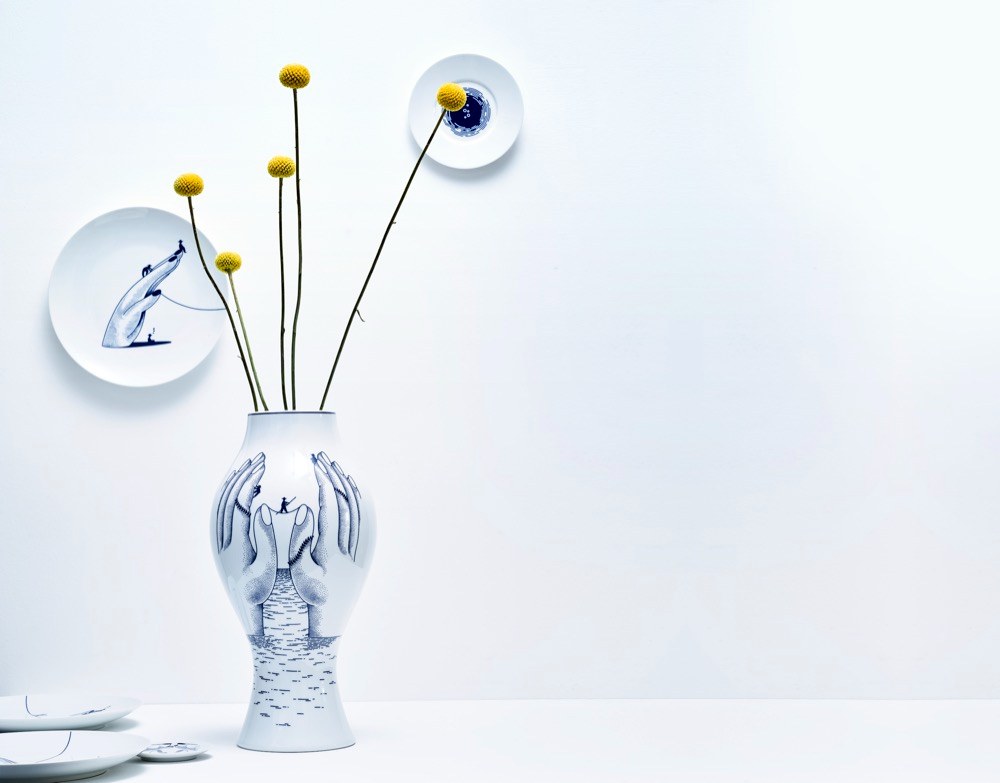 Francouzský designér a ilustrátor Morgann Lechat navrhl působivé motivy pro porcelánovou kolekci Far, Far, Closer (Rosenthal), symbolizující jeho slovy „návrat k sobě samým a ústup do nejniternějšího bytí, které nám dává oporu v dobách vnější nejistoty“. Tuto intimní cestu vyjádřenou emotivními ilustracemi neomezují formální hranice – ty naopak neustále překračuje. Váza o výšce 40 cm je dostupná v limitované edici 100 kusů za cenu 18 460 Kč, WWW.POTTENPANNEN.CZ