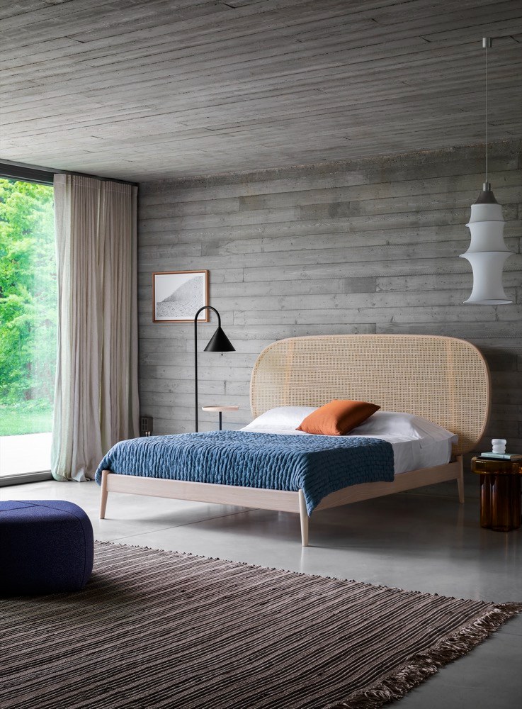 „Shiko Wien přebírá novou a přirozenější identitu. Rám postele z masivního dřeva ve spojení s jemnou silou vídeňského výpletu dohromady tvoří intimní příběh stínů.“