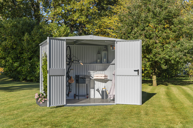 Zahradní ocelové domky se objevily v nabídce firmy Hörmann poměrně nedávno, ale velmi rychle si získaly oblibu, a zákazníky tak jistě potěší, že se staly i součástí letošní akce: konkrétně se jedná o zahradní domek na nářadí Berry Classic se sedlovou střechou, který je nabízen v jednokřídlé i dvoukřídlé variantě, a to včetně hliníkového podlahového rámu, který je zahrnut v ceně.