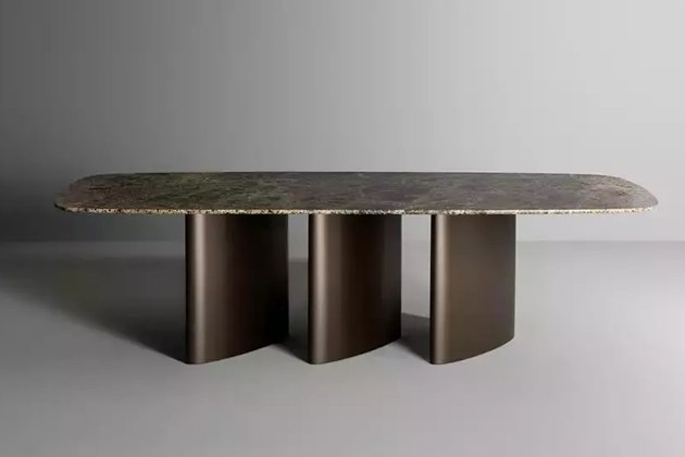 Stůl Louver navržený Alainem Gillem odhaluje svůj charakter postupně, přičemž nabízí jiný pohled v závislosti na úhlu, z něhož je pozorován. Díky své silné divadelní přítomnosti se stává ústředním bodem každého prostoru.