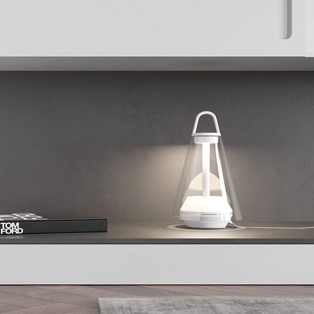 Shuttle (Prandina) zajistí kvalitní osvětlení a dobrý design, kamkoli ho položíte. Přenosné stolní svítidlo je vybaveno dobíjecí baterií, která vydrží na jedno nabití až osm hodin a jeho součástí je také dotykový senzor s možností stmívání a nastavení barevné teploty. Ručně foukané sklo, konstrukce z kovu. Design Marco Alessi, cena 15 970 Kč, WWW.BULB.CZ