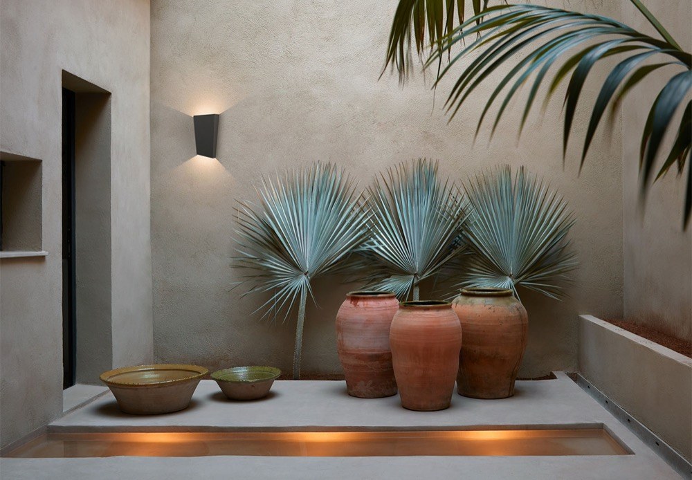 Kolekci venkovního nástěnného osvětlení Break Plus (Vibia) definuje instinktivní propojení s okolní krajinou i současnou architekturou. Hravě promění jakoukoli stěnu v trojrozměrnou malbu tvořenou výraznou asymetrií, plasticitou a nepřímým osvětlením nahoru i dolů... Hliník, výška 14 cm, cena 8 960 Kč, WWW.AULIX.CZ