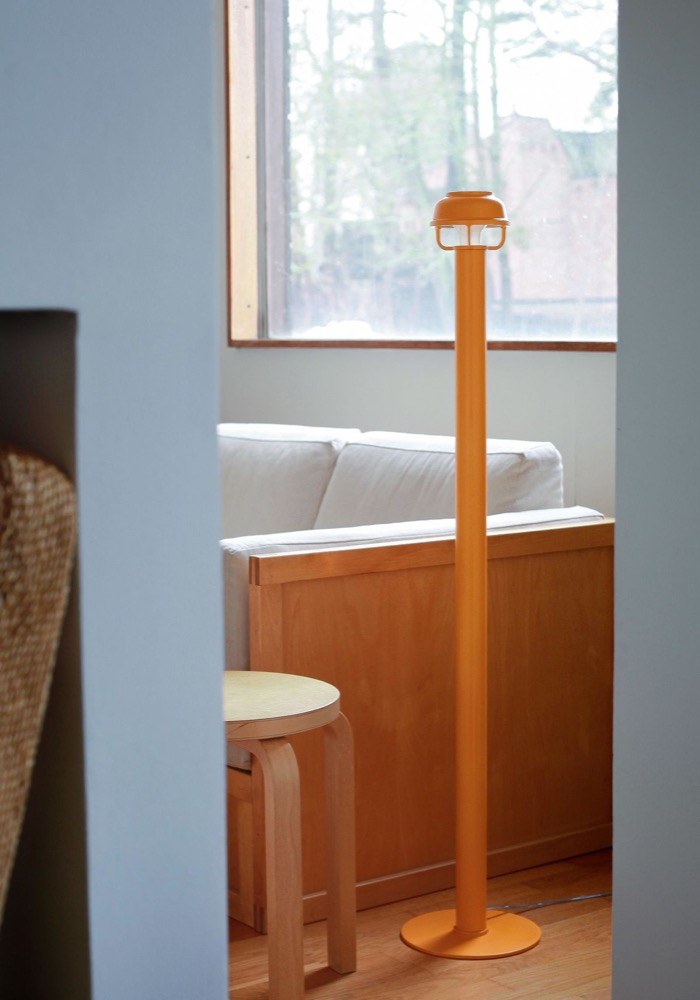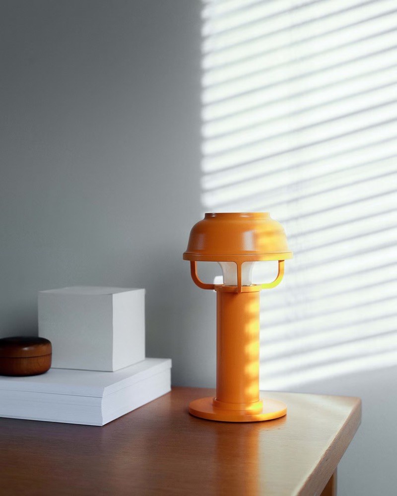 Kolekce zahrnuje pět typů svítidel, stojací a stolní lampy jsou k dispozici také v zářivě oranžovém matném provedení. Materiál zinek, ocel a recyklovaný hliník, výška 22 cm, cena 9 684 Kč, www.designville.cz