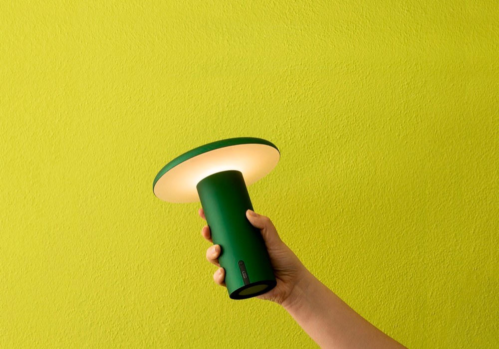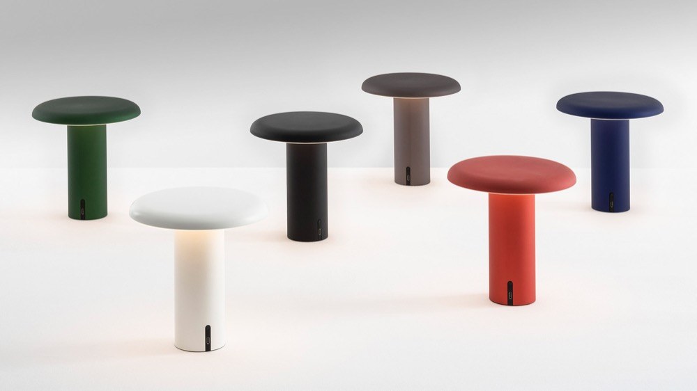 Stylovým doprovodem na terasu, ale třeba i skladným souputníkem na cesty je přenosné svítidlo Takku (Artemide).