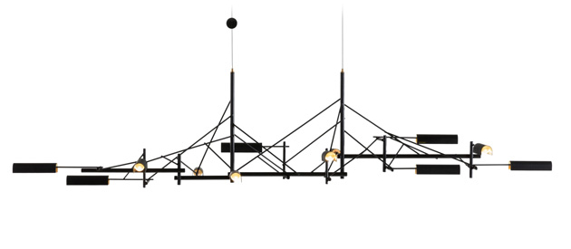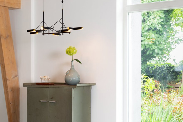 Výsledkem je závěsné svítidlo Tinkering (Moooi), které svou konstrukcí připomíná víc sofistikované umělecké dílo než praktické osvětlení. Ve skutečnosti se mu daří být obojím stejně…