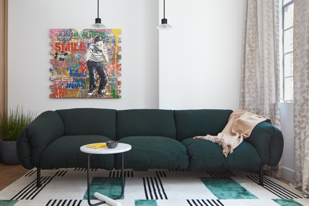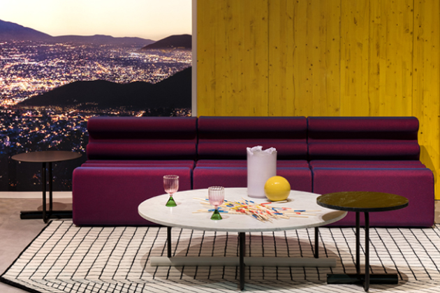 Grafický znak a hravá geometrie definují modulární kulaté konferenční stolky navržené tak, aby dotvářely plochu pohovky tím, že poskytují opěrnou plochu v různých výškách a šířkách. Všestranná kolekce, která vzdává hold radostné estetice Memphisu s moderním nádechem.