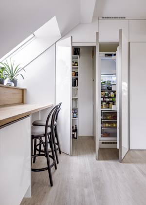 Od té doby, co se úložné prostory staly kamenem úrazu současného bydlení, přemýšlejí výrobci kuchyní, jak chytře suplovat dříve existující místnosti, jako bývaly spíže a komory. Daří se jim to a mnohdy více než překvapivě ve formě skrytých zázemí, která se otevírají přímo za kuchyňskými dvířky.