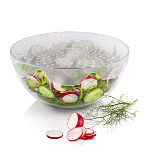 Foto: Tescoma4Food (Tescoma), silikonová pružná víka vzduchotěsně uzavřou obsah mísy či hrnce, průměr 18 a 24 cm, cena 189 Kč → www.tescoma.cz