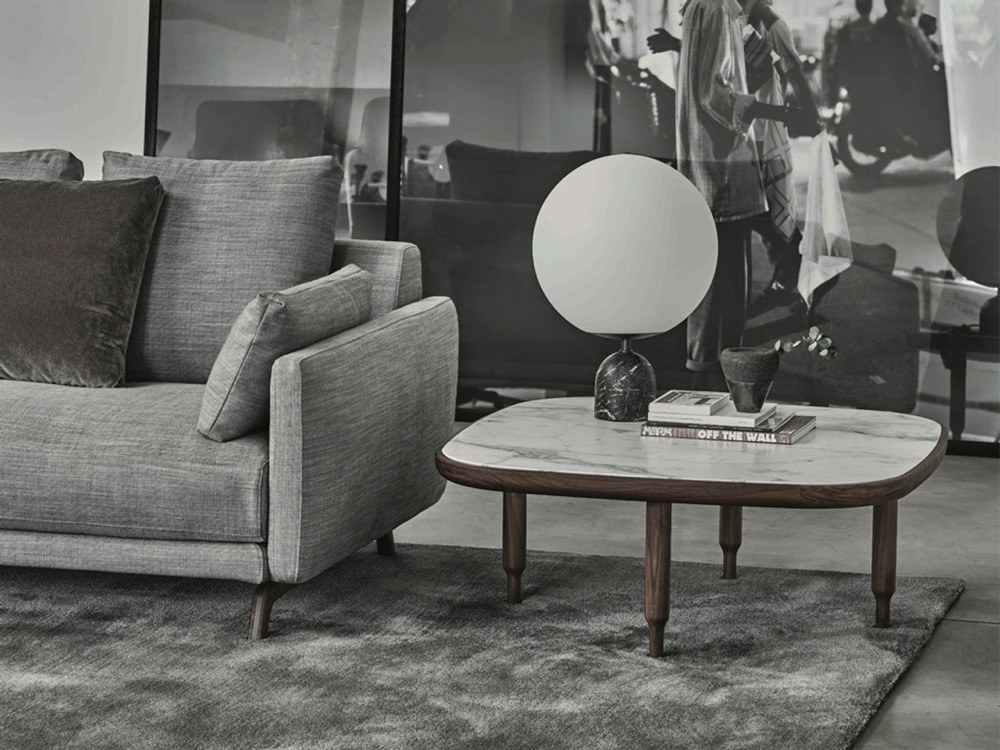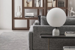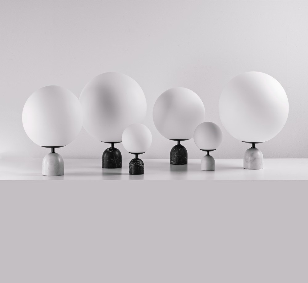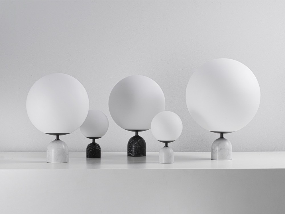Kolekce stolních svítidel Ekero (Porada) balancuje mezi těžkým kalibrem mramoru a lehkostí opálového skla.