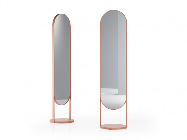Volně stojící zrcadlo Nimbe (Ligne Roset) je jako stvořené pro zachycení křehké krásy feminity.
