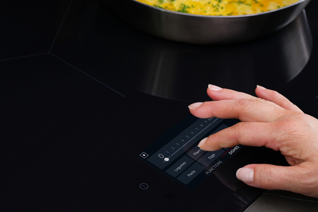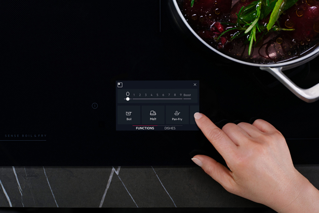 Varná deska AEG 8000 Sense Boil & Fry, která díky dotykovému displeji CookSmart asistuje při vaření a smažení, nabízí předuložená nastavení pro přípravu různých druhů pokrmů.