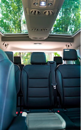 Pro přepravu osob je samozřejmě klíčový počet sedadel. Těch může být až devět a nespočet způsobů, jak je uspořádat. Dají se posouvat, sklápět i úplně vyjmout. V luxusnější verzi „VIP Pack“ si můžete vytvořit uspořádání ve stylu obývacího pokoje, se čtyřmi nezávislými sedadly proti sobě a s nadstandardní výbavou. Ta zahrnuje například automatickou dvouzónovou klimatizaci, přídavnou stropní klimatizaci s osvětlením nebo panoramatické okno s protislunečními clonami. Chtějí-li cestující využít jízdu k práci či k relaxaci, přijdou jim vhod výklopné stolky ve druhé řadě či zabudované roletky. Za zmínku stojí také mimořádně komfortní nastupování do vozu. Posuvné boční dveře se ovládají elektricky, a navíc mají hands-free přístup umožňující jejich bezdotykové otevření. To oceníte například při usazování dětí do autosedačky nebo při nakládání zavazadel. Rodiny s více dětmi ocení fakt, že i v bezpečnostních sedačkách pohodlně usadíte tři děti vedle sebe!