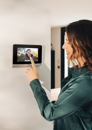 Další pohodlí přináší videotelefon – V500 PRO io Connect – díky kterému na videu rovnou vidíte, kdo u vašeho domu zvoní a můžete tak otevřít a zavřít bránu na dálku. Vnitřní monitor nejen upozorní zvoněním, když přijde návštěvník, ale navíc odešle oznámení s fotografií návštěvníka na všechny smartphony připojené k aplikaci Somfy Protect. Pokud někdo zazvoní na zvonek ve vaší nepřítomnosti, V-Connect od společnosti Somfy vám ukáže, kdo stojí před vchodem, a umožní vám