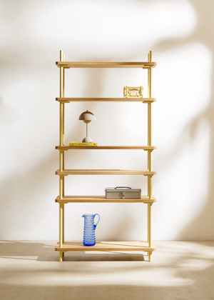 Foto: buducz.comModulární policový systém, masivní dub a lakovaný kov, cena od 19 800 Kč