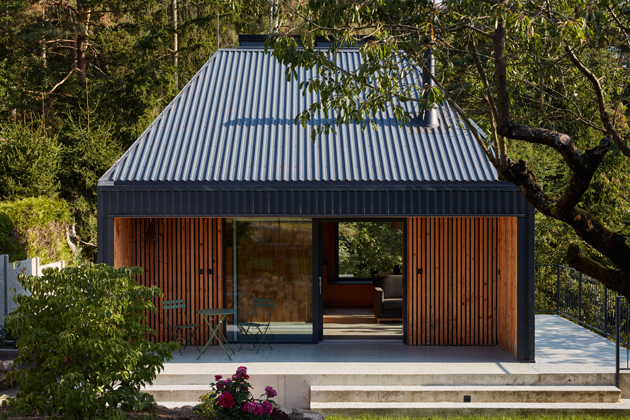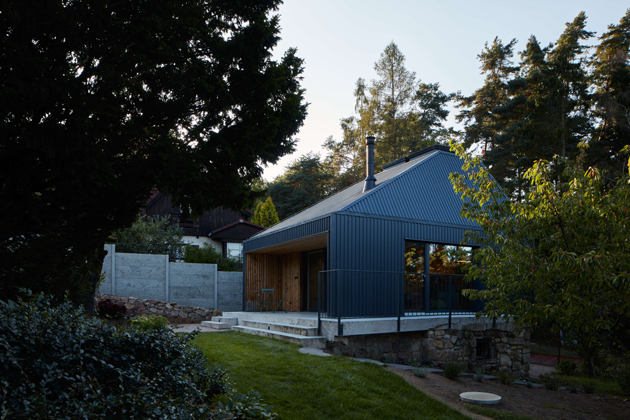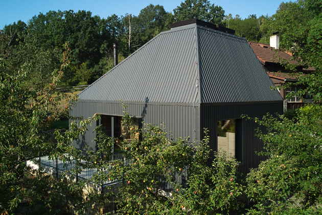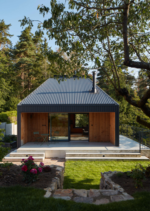 Na světlíky vsadil i architekt proměny chaty v rekreační oblasti za Prahou, kterou si manželský pár pořídil pro „útěk z města“. Do svého útočiště před městským ruchem se velmi těšili, dokonce absolvovali kurz zahradničení. Stavba ale byla ve velmi špatném technickém stavu a nevyhovovala ani dispozičně. Územní plán však nedovoloval novostavbu a výška byla omezena na maximálně 7,7 m od přilehlého terénu.