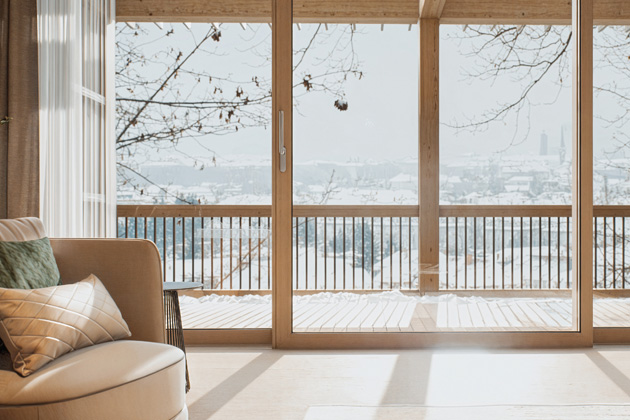 Povrch dřevěného rámu u oken je nutné chránit nejen před vnější, ale i před vnitřní vlhkostí, a proto mají okna VEKRA Alu Design kromě standardní třístupňové ochrany ještě speciální, roboticky nanášenou membránovou vrstvu. Ta brání vlhkosti v průniku do dřeva, zároveň jí ale nebrání, aby se rychle odpařila pryč. Díky tomu se ani po letech nezačne vrchní nátěr loupat.