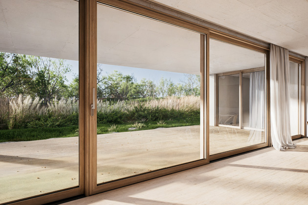Vysoká pevnost a odolnost dřevohliníkových prvků je předurčuje pro výrobu velkoformátových sestav. Zejména v obytných místnostech dnes majitelé preferují velkoformátové provedení oken s maximální plochou skla. Mezi žádaná provedení architektonicky atraktivních oken patří jejich bezrámová řešení, kdy sklo zdánlivě plynule navazuje na fasádu. Pokud je třeba něco opravit, bývá nutné narušit fasádu a okenní ostění, protože rám je ve stěně. „Mysleli jsme na to, aby z vnitřní strany interiéru zůstal dřevěný rám volný, a díky tomu se při jakémkoli servisu nemusí narušovat ostění či fasáda. Jde o dřevohliníková okna VEKRA Integral,“ vysvětluje Ing. Milena Tomčíková ze společnosti VEKRA. Dřevohliníková okna VEKRA jsou také k dispozici v provedení celoprosklených strukturálních rohů, kdy jsou dvě izolační skla v rohu spojena napřímo bez použití rohového sloupku.