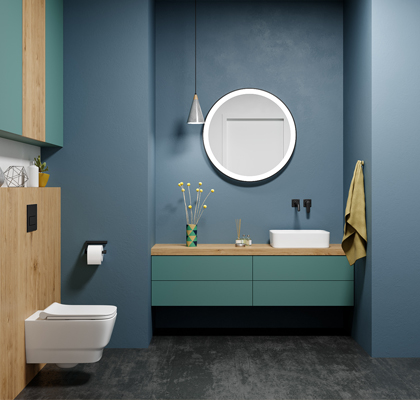 Jemně oblé tvary dodají vaší koupelně nádech luxusu, elegance a pocit výjimečnosti. Inspirujte se například sestavou s toaletou Myjoys MY2, která je díky svému designu skvělým doplňkem pro jakýkoliv moderní interiér. Kombinujte ji s umyvadlovou deskou se zásuvkami, které poskytují dostatek úložného prostoru a jsou osazeny praktickým umyvadlem Joy. Třešničkou na dortu pak může být elegantní zrcadlo OREO, které svým kulatým tvarem a jednoduchou linií podtrhne celkový dojem a dodá koupelně vzdušnost a styl.
