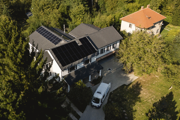 Solární panely jsou rozloženy do tří hlavních orientací – 10 panelů Longi 580 Wp směřuje na východ, 10 panelů na západ a 28 panelů Longi 430 Wp míří na jih. Díky kombinaci s optimizéry je zajištěn nejen maximální výkon každého panelu, ale i vyšší bezpečnost systému s možností nouzového vypnutí.